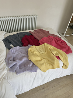 드롭숄더 구조를 기반으로 하지만 소매경사뜨기를 통해 어깨선이 부드럽게 연결되도록 설계되어 있어