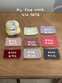 * 실 소요량 (m): My fine wool과 Kid Seta는 한 볼당 실 길이가 다르지만, 실제 작품을 뜰 때는 My fine wool이 다소 더 많이 소요되는 경향이 있었습니다. 따라서 실제 사용량 기준으로 보면, 두 실 모두 같은 볼 수만큼 준비하시면 충분합니다. 즉, 미터 수는 차이가 있을 수 있지만, 볼 수 기준으로 준비하시면 비슷한 볼 수로 필요합니다.
