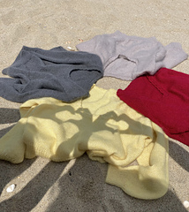가볍고 포근한 착용감을 위해 fingering 굵기의 울실과 보송한 모헤어 실을 함께 사용합니다.