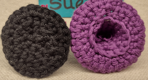 Crocheted in the round. Gauge isn’t important, you can size up or down by changing yarn and hook size. About 2” tall in worsted yarn.
