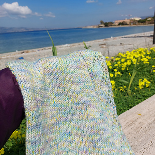 Knitted, begginer friendly scarf with Drops Design Fiesta,