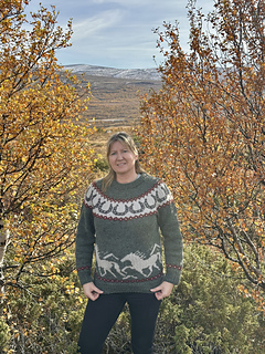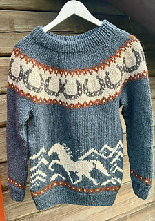 Genseren strikkes nedenfra og opp på pinne nr 6. I vams fra Raumagarn, som er 100% norsk produsert ullgarn.
