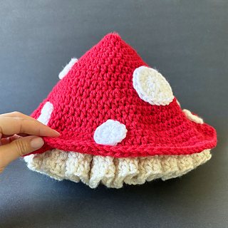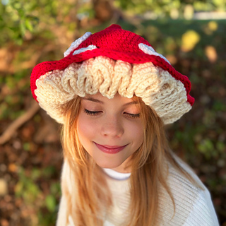 A cheerful mushroom hat inspired by the classic red-and-white toadstool — perfect for festivals, photo shoots, or just bringing a bit of whimsy into your day. Want to hear a lot of compliments? This is your hat!