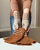 Die abgebildeten Stulpen sind in den Farben “Poivre et Sel” (beige) und “Caramel” (braun) gestrickt.