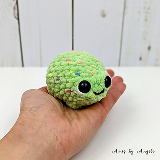 In blanket yarn, Tommy the Toad is approximately 11 cm (4.5 in) long.