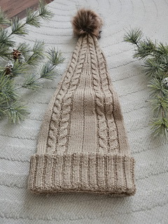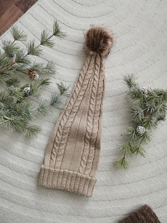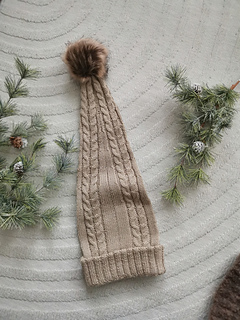 Tontun taival on pehmeä ja lämmin tonttulakki, jossa yhdistyvät klassinen palmikkokuvio ja satumainen muoto. Pitkä hiippa laskeutuu kauniisti alas, kuin hiljainen jälki lumessa. Tämä lakki kulkee mukana niin metsäretkillä kuin joulun odotuksessa – kuin pieni kulkija, joka hiipii hiljaa taivaltaan.