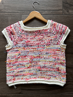 Un top tejido de arriba hacia abajo con un canesú limpio y moderno, diseñado para jugar con el color. Se construye en circular combinando un hilo base con restos de hilados más finos, creando un efecto jaspeado único en cada prenda.