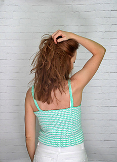 Además del patrón escrito se incluye un gráfico de las tramas del cuerpo del top y los tirantes y videotutoriales que explican cómo tejer las diferentes partes.