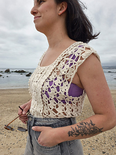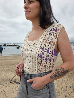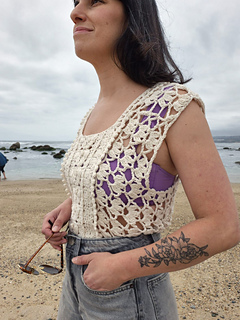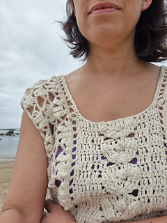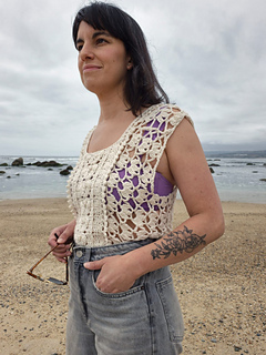 El #Tophumilde saca a relucir toda la delicadeza del encaje que se puede crear con el crochet. A partir de la combinación de entretenidos puntos en relieve y calados, crearás una polera de corte sencillo pero especial.