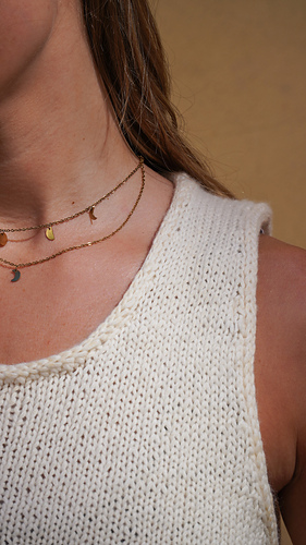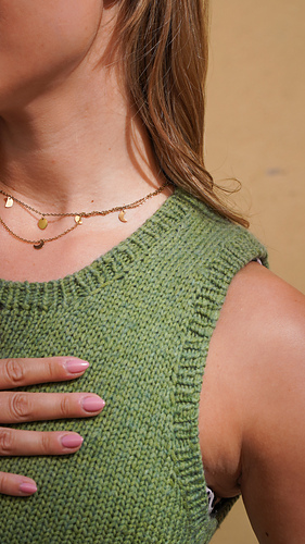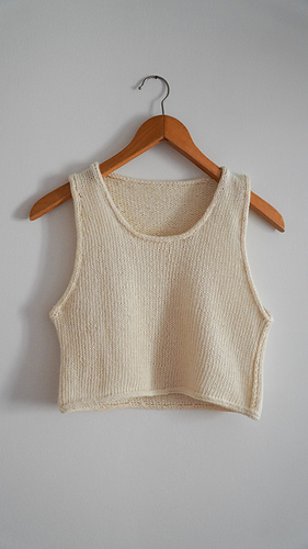 Dieses Tank Top wird nahtlos von oben nach unten glatt rechts gestrickt.