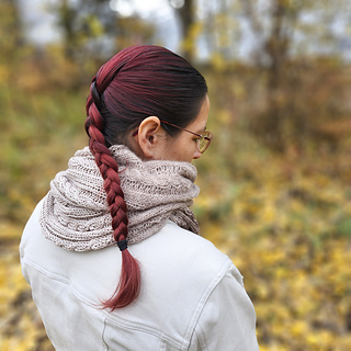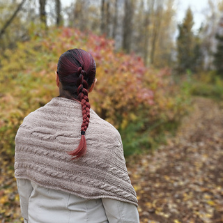Le châle Torséa explore la richesse des textures à travers cinq laines différentes de grosseur DK, toutes de la même teinte. Cette diversité de fibres crée un jeu de reliefs et de douceur.