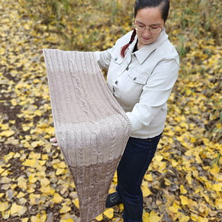 Worked lengthwise, it is started at the short edge and progresses to the opposite end, forming a long, slightly tapered scarf-like shape.