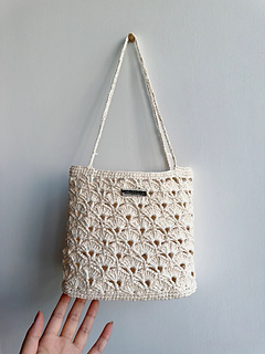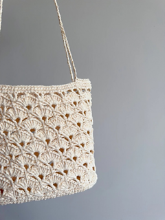 A lightweight and elegant crochet bag featuring a delicate shell lace texture, perfect for everyday use or a soft minimal look.