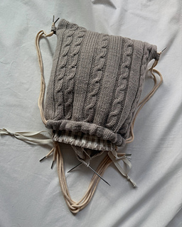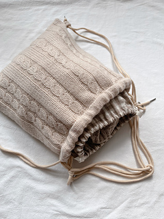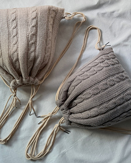 Two Two Pouch is a 2-in-1 mini bag featuring a two-stitch cable pattern. Enjoy it as a backpack or a shoulder bag, depending on your preference!