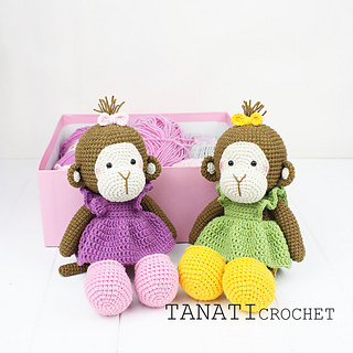Monkey – size 26 cm (10 in), if using sport weight yarn (Sport (12 wpi), 2: Fine).