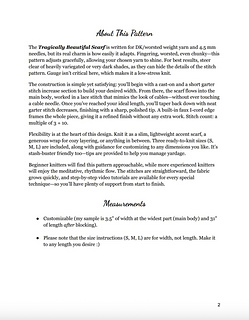 Flexibility is at the heart of this design. Knit it as a slim, lightweight accent scarf, a generous wrap for cozy layering, or anything in between. Three ready-to-knit sizes (S, M, L) are included, along with guidance for customizing to any dimensions you like. It’s stash-buster friendly too—tips are provided to help you manage yardage.
