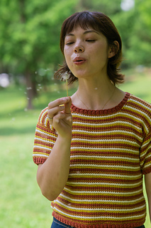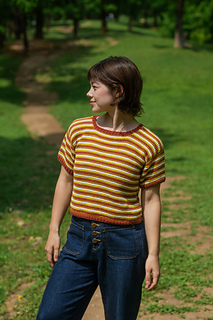 The Trails Tee is an excellent summertime tee. The body panels are worked flat bottom up while the sleeves are worked flat top down. The bottom ribbing, sleeve cuffs, and collar are crocheted directly onto the panels. The sleeves are seamed onto the body panels.