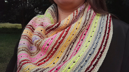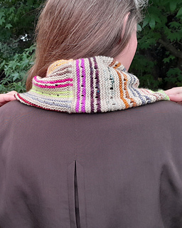 The Tranquility Cowl is a fun cowl pattern made with contrast colour stripes and lace detail specifically to use minis or left overs. The cowl is knit flat in garter and has no purl stitches in the entire pattern! But if the colourful cowl is not your choice you can make the cowl in only two colours and I knit two samples so that you can see what that looks like.