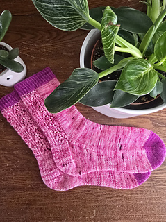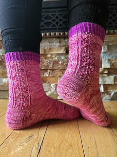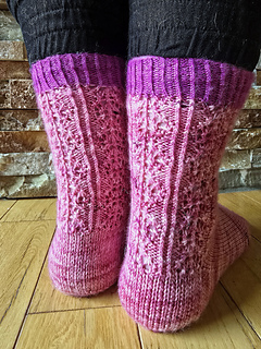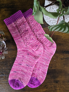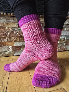 - Contrasting Color (CC): 15 g of De Maille en Bas, 80% BFL Superwash/ 20% Nylon, 25 g/83 m – Orchidée