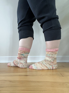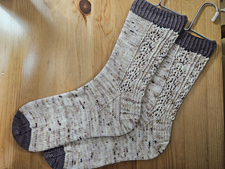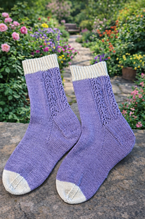 Collaboration avec De Maille en Bas, les chaussettes Trapezius se tricotent des côtes vers les orteils avec la jolie dentelle du Trapezius Tee présente à l’arrière de la jambe seulement, pour une touche romantique et simple à la fois!