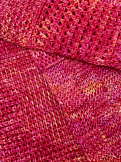 Designed to show off the interesting textures, this scarf looks great in hand-dyed yarns with subtle color combinations and solid color yarns; variegated and high-contrast color changes tend to detract from the stitch definition. Sample in photos is show in Malabrigo Rios color 280 “Gemini.”