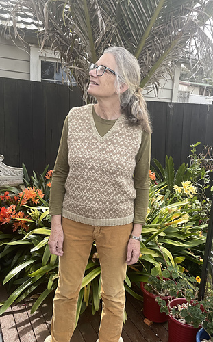 The tank is worked from the bottom up, with stranded colourwork on the body and steeks for the neck and arms. There’s contrasting ribbing to finish the edges, with an optional split hem and short-row shaping on the neckband and armholes.