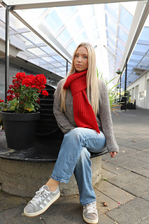 The scarf is soft and warm. It is easy to lengthen or shorten it to your own needs, simply by knitting more or fewer rows.