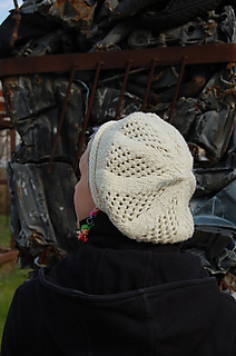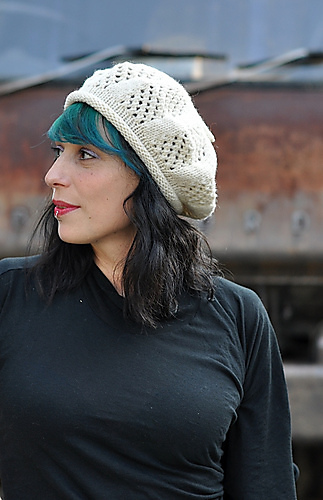 Trellis is a modern beret, knit in the round with panels of stocking stitch and eyelets. This is an ideal Hat for beginning lace knitters and is easily adjusted for different sizes.