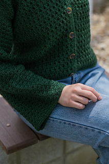 The Trellis Cardigan is a light-weight cardigan inspired by beautiful spring gardens. The Trellis Cardigan is worked from the bottom-up in 3 individual panels. The stitch creates a natural buttonhole, so there isn’t a separate button band. Sleeves are then worked and seamed onto the panels.