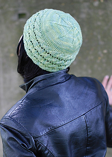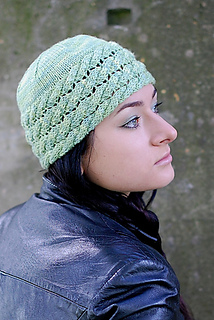 Trenza is an interesting beanie, comprising a sideways cable and lace band, which is grafted together. The body stitches are then picked up and worked vertically.