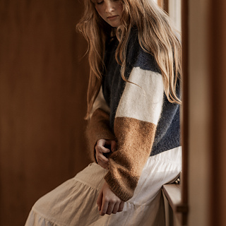 The back and front are knit flat with the use of short rows at the shoulders for the perfect fit. The panels are then joined at the underarms to continue the body in the round. Sleeves and neckline are picked up and knit in the round.
