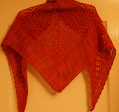 This is a very pretty Triangle Lace Shawl. Not to difficult to make if you already know the basics and the lace carriage on the machine.