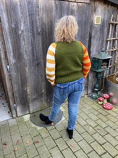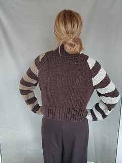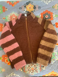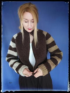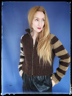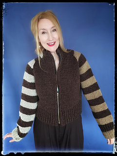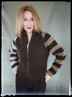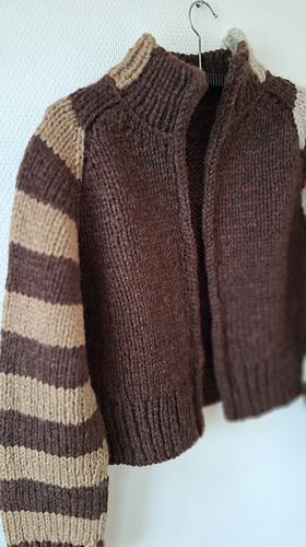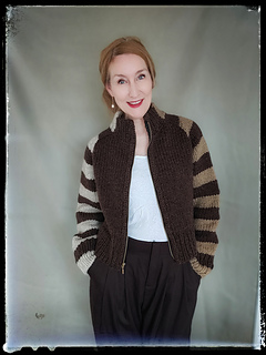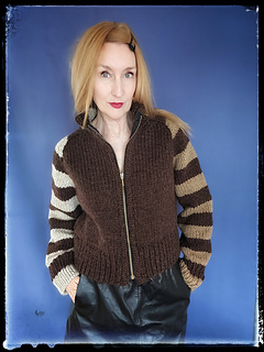 The Tricolore Zipper Jacket is a lovely jacket for spring, for autumn, as a cozy indoor jacket in winter, and here in the Nordic countries for a cool summer day. It is quick to knit due to its large gauge. It has a great fit that simply sits well. The shape is a compound raglan. It is worked top-down and back and forth, and intarsia is used until the sleeves are separated from the body.