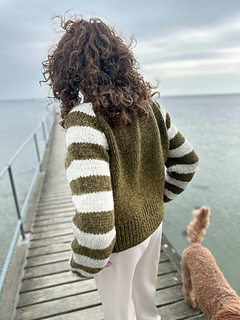 Yarn is held double - and You use Rauma Vams (83 m/ 50 grams, 100% Norwegian wool) 10, (10, 11, 12) 13 skeins MC, 2, (2, 2, 3), 3 skeins CC1, 2, (2, 2, 3), 3 skeins CC2 – if you shorten the sleeve, or knit the body wider and longer, it will change the yarn amount needed