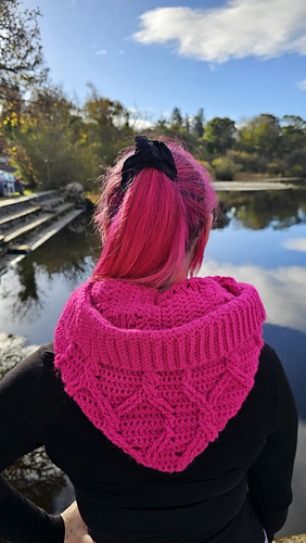 TRINITY is a crochet pattern that includes three unique projects – a Sweater, a Shawl, and a Hood with a Cowl.