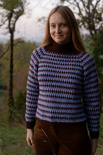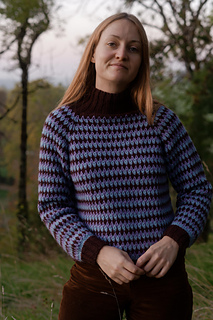 Trinity is a raglan sweater that is knitted in the round from the top down.