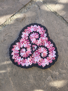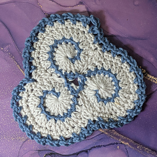 The pattern makes a coaster incorporating a Celtic Triskelion design. It uses the back loop but help is given in recognising this. Otherwise it is the final construction of the coaster that is trickier that the actual crochet. There are pictures to illustrate the different stages of this.