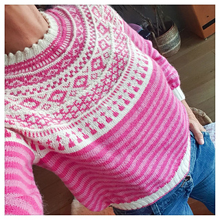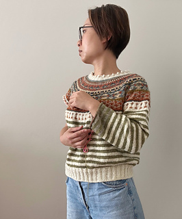 skills and knowledge of how to do short rows if you wish to make the sweater version. Pattern also assumes knowledge of the Fair Isle technique (stranded colourwork) and cable cast-on.