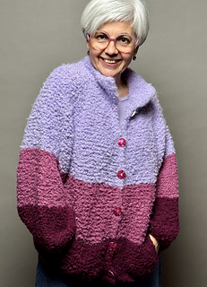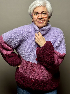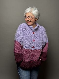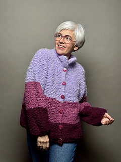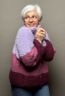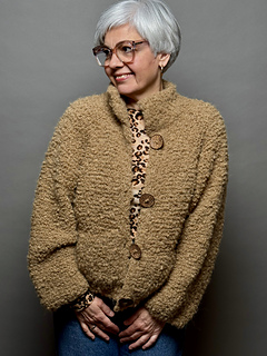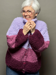 Mit »Tschilly«-Cardigan strickst du dir eine kuschelige Jacke im Oversize Look. Das fluffig Bouclé Garn ist mit dicken Nadeln schnell verstrickt und hüllt dich in weiche Löckchen ein.