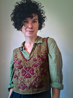Tsibulak Vest is a slightly cropped & boxy vest featuring elegant Roosimine colourwork and a deep V-neck. The name Tsibulak comes from the Czech word cibulák—a term used for traditional Bohemian porcelain decorated with delicate floral motifs. Cibule means “onion,” which is why this style is often called “onion porcelain,” known for its charming mix of flowers, stems, and onion-like shapes.