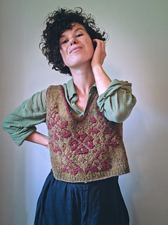 The inspiration for this vest had been resting in my drawer for almost two years before I finally found the perfect yarn and cast on without hesitation. With this design, I wanted to bring a piece of Czech cultural heritage into modern knitting—merging folk inspired ornamentation with a contemporary silhouette.