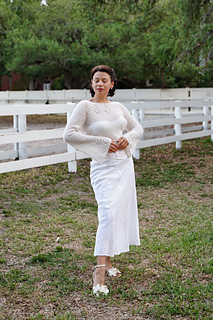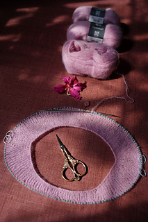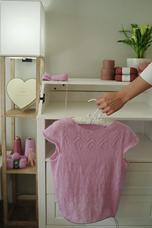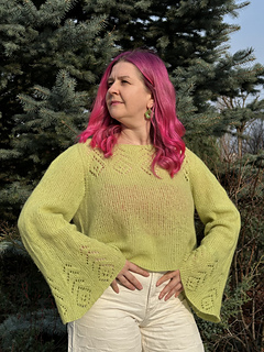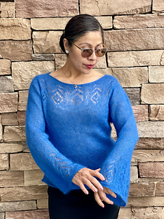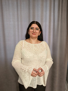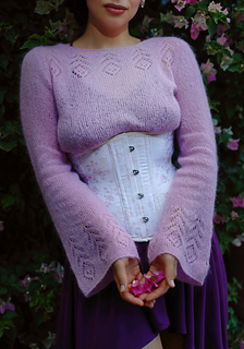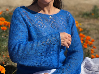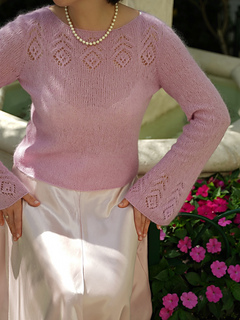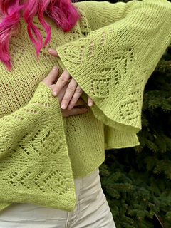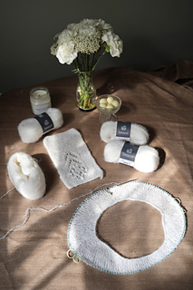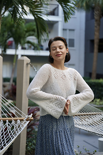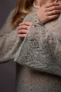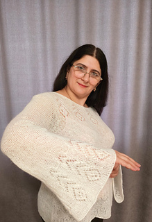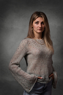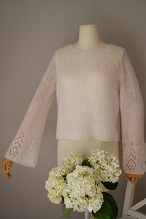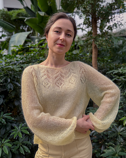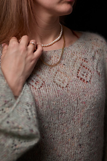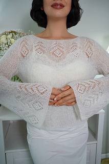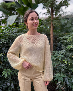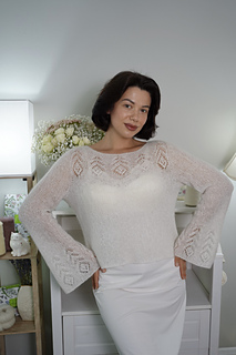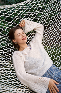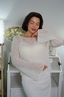 Light and airy, like a feather. The lace on the neckline and sleeves unfolds like spring blossoms. Tuberoses blouse brings femininity and grace to any wardrobe. Knitting it is effortless and delightful, with a small, satisfying yarn usage.