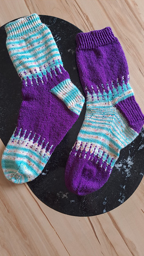 Es ist eine einfache Anleitung für sogenannte fraternale Socken - bei der zweiten Socke vertauschst Du die Farben. Damit erkennst Du, dass es sich um Socken aus dem gleichen Paar handelt, obwohl sie sich sehr ähneln.