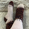 This is an easy pattern for fraternal socks - you swap the colors for the second one to get socks that look like fraternal twins. Not the same, but easily to recognize that they are from the same tribe.