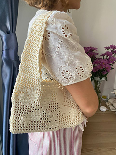 Create an airy yet structured crochet bag featuring a delicate tulip motif worked in filet crochet.