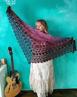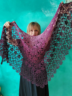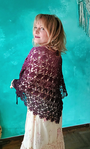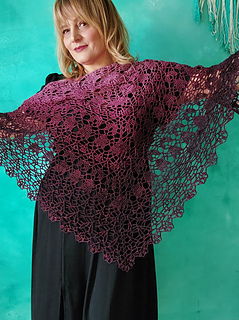 Scialle romantico dalla costruzione semplice e modulabile. Perfetto per ogni stagione dell’anno. Lavorazione adatta anche ai principianti