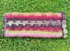 The main body of the piece is worked in Tunisian crochet. It is seamed together and borders are added to the two openings using standard crochet.