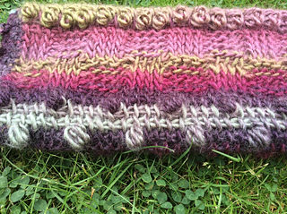 This pattern provides instructions for a basic muff. You can then add all sorts of items to the inside and outside, such as buttons, ribbons, pom-poms etc. Add as many things as you like – the more the better as the variety of texture is what helps the dementia patients. The stitches described could be used in a different order for alternative effects.