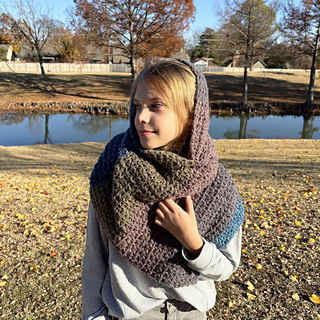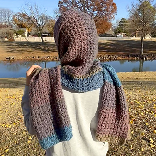 A cozy scarf with a turtleneck collar that can be wrapped like a shawl or worn as a cowl. Perfect for chilly days, this design combines style and comfort.