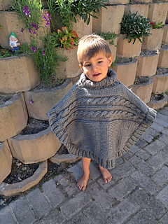 Design overview: Knitted from side to side, this poncho is warm, comfortable, and quick to make using bulky weight yarn. The yoke features horizontal cables separated by columns of stockinette stitch, creating a balanced texture. A simple ribbed turtleneck and edge band complement the cable and stockinette sections, adding structure and softness. The poncho is designed with dropped shoulders and a rounded bottom hem for a relaxed, flattering fit. Wooden buttons decorate the sides, adding a rustic touch. This cozy piece is perfect for layering and wearing at winter time.